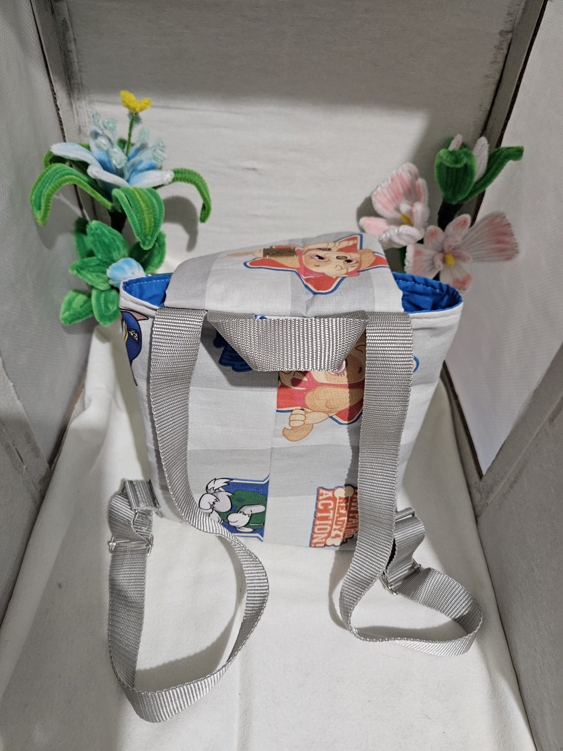 Le sac à dos est réaliser en tissu avec des motifs pat-patrouille.